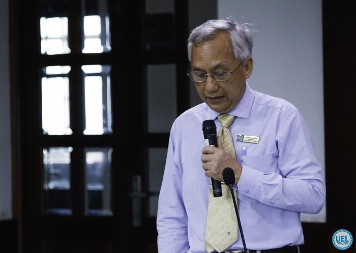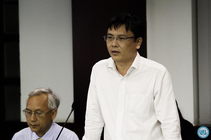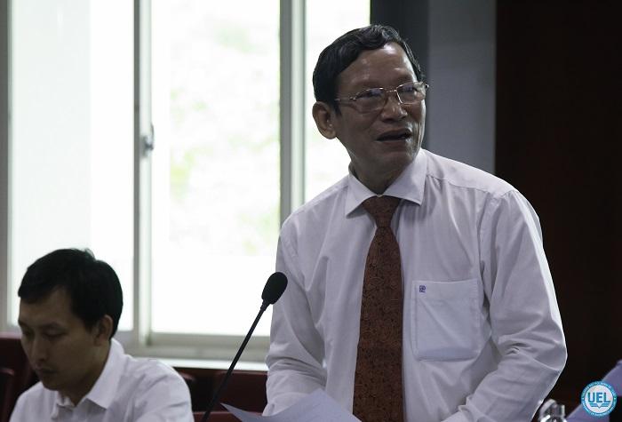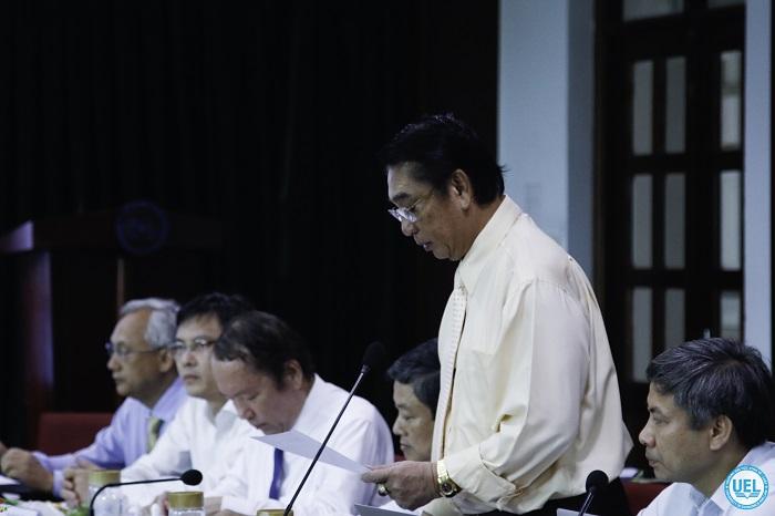 PGS.TS Lê Vũ Nam - Phó Hiệu trưởng Nhà trường báo cáo Hội đồng Trường thông qua việc thành lập Viện Nghiên cứu Pháp luật Quốc tế và So sánh