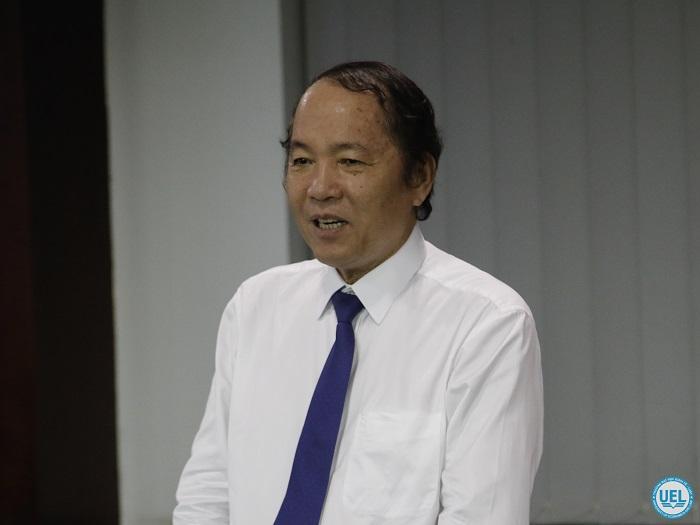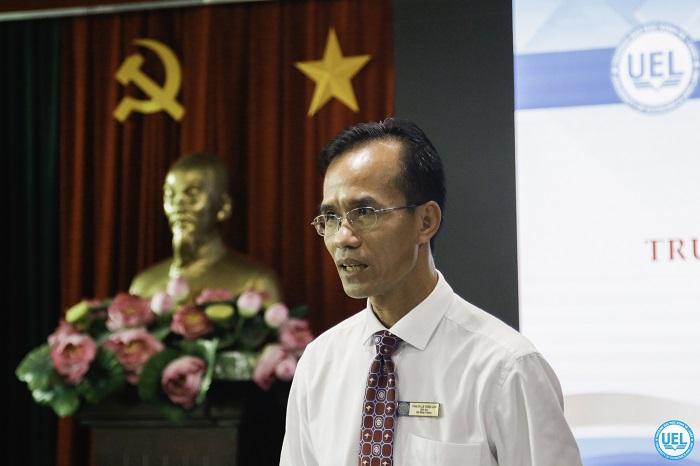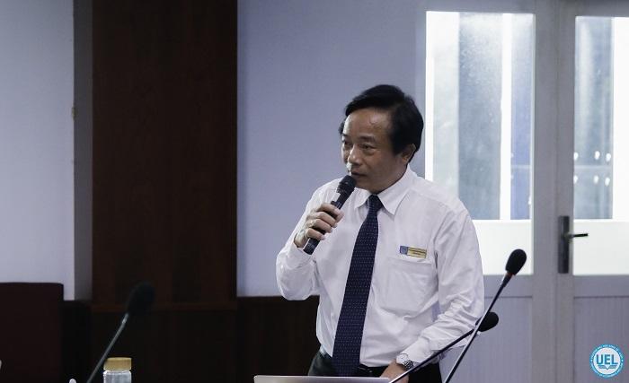 PGS.TS Hoàng Công Gia Khánh - Phó Hiệu trưởng Nhà trường báo cáo tổng kết năm học 2019-2020 và phương hướng hoạt động năm học 2020-2021 của Trường