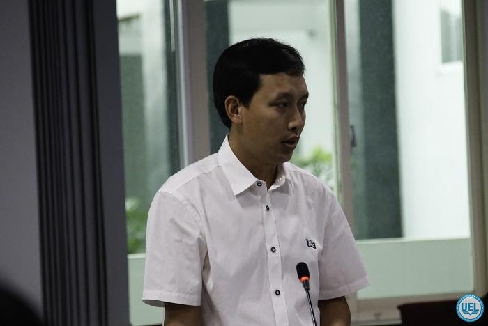 ThS Hà Thanh Minh - Thư ký Hội đồng Trường, Trưởng phòng Tổ chức - Hành chính báo cáo Kế hoạch thực hiện quy trình bổ nhiệm Phó Hiệu trưởng
