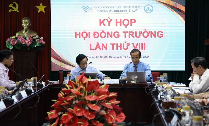 Kỳ họp lần thứ tám Hội đồng trường Hội đồng Trường Đại học Kinh tế - Luật đã diễn ra với các nội dung sau: Báo cáo của Ban giám sát về thực hiện Nghị quyết Hội đồng Trường; Báo cáo tình hình hoạt động Quý 2 và kết quả tuyển sinh theo "Đề án tuyển sinh đại học" năm 2022; Xin ý kiến về Đề án "Cơ cấu tổ chức thực hiện chiến lược phát triển UEL, giai đoạn 2021 - 2025"; Xin ý kiến về Đề án "Thành lập Viện Phát triển Chính sách ĐHQG - HCM"; Xin chủ trương về việc cập nhật, bổ sung, điều chỉnh Dự thảo Quy chế hoạt động của Hội đồng trường, nhiệm kỳ 2020 - 2025.