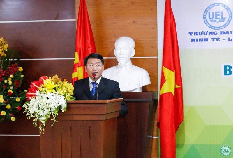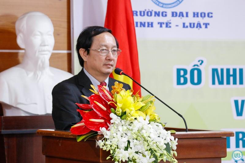 PGS.TS Nguyễn Tiến Dũng - Hiệu trưởng Trường ĐH Kinh tế - Luật phát biểu chúc mừng các Phó hiệu trưởng