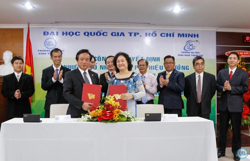 Nhằm tăng cường sức mạnh hệ thống, đào tạo liên ngành trong Đại học Quốc gia TP.HCM, Trường Đại học Kinh tế - Luật và Trường Đại học Công nghệ thông tin đã thực hiện ký kết bản ghi nhớ hợp tác. Thời gian tới, hai trường sẽ hợp tác trong các nội dung:
