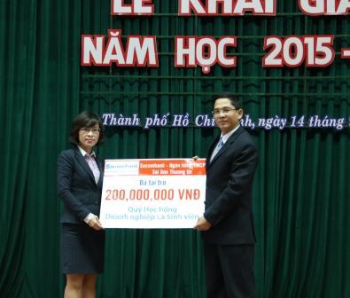 Tại lễ khai giảng này, các cá nhân, tổ chức, doanh nghiệp đối tác đã trao học bổng cho các thủ khoa với số tiền lên tới 45 triệu đồng và tài trợ hơn 3,7 tỷ đồng cho học bổng cùng các hoạt động khác trong năm học 2014 - 2015 của Nhà trường.