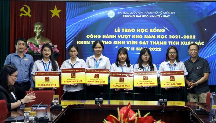 Trong năm học 2021-2022, Trường cũng tiếp tục nhận được sự quan tâm, hỗ trợ từ các đơn vị, tổ chức tài trợ các hoạt động của Trường nói chung và quỹ học bổng của sinh viên nói riêng, cụ thể: Công ty Cổ phần Tập đoàn Hoa Sen, Ngân hàng TMCP Phát triển TP.HCM (HDBank), Ngân hàng TMCP Ngoại thương Việt Nam (Vietcombank) - Chi nhánh TP. HCM, Ngân hàng Nông nghiệp và Phát triển Nông thôn - Chi nhánh Sài Gòn; Các đơn vị đã tài trợ trao 60 suất học bổng Đồng hành vượt khó cho các bạn sinh viên (5 triệu đồng/suất). Đây là các bạn sinh viên có hoàn cảnh gia đình khó khăn, đạt nhiều thành tích tốt trong học tập và rèn luyện; có ước mơ hoài bão lớn, và mong muốn tạo ra những giá trị tích cực cho cộng đồng và xã hội.