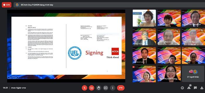 UEL và ACCA thực hiện ký kết biên bản ghi nhớ hợp tác bằng hình thức trực tuyến
