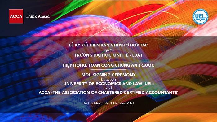 Vào lúc 14h00 ngày 01/10/2021, Trường Đại học Kinh tế - Luật và Hiệp Hội Kế Toán Công Chứng Anh Quốc đã tổ chức lễ ký kết biên bản ghi nhớ hợp tác giữa hai đơn vị.