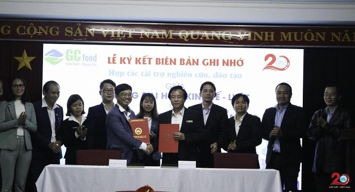 Ông Nguyễn Văn Thứ đại diện Công ty Cổ Phần Thực Phẩm G.C Food và PGS.TS. Nguyễn Tiến Dũng đại diện UEL ký kết biên bản ghi nhớ hợp tác
