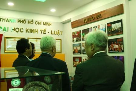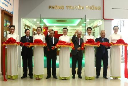 Trước khi đi vào lễ chính, Trường đã tiến hành cắt băng khánh thành phòng truyền thống mở. Đây là nơi lưu giữ những kỷ vật, thành quả của trường trong suốt quá trình phát triển. Là nơi để cho các thế hệ cán bộ viên chức, sinh viên, học viên, nghiên cứu sinh và khách liên hệ công tác có thể tham quan, tìm hiểu thêm về quá trình xây dựng và phát triển Trường Đại học Kinh tế - Luật.