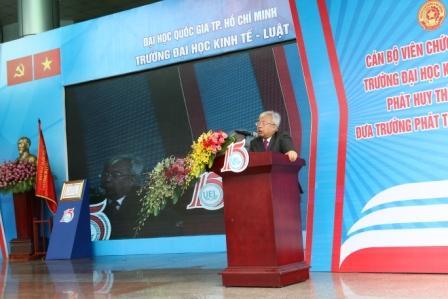 Ngày 06/11/2015, Trường Đại học Kinh tế - Luật long trọng tổ chức Lễ kỷ niệm 15 năm Ngày truyền thống và 5 năm Ngày thành lập Trường.