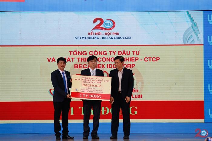 Trong Lễ Kỷ niệm đã diễn ra nhiều nội dung ý nghĩa gắn liền với chủ đề "Kết nối - Đột phá" của 20 năm Ngày truyền thống Trường như: Lễ đón nhận các danh hiệu thi đua, khen thưởng; Nghi thức vinh danh, tri ân 20 tổ chức, cá nhân đóng góp tiêu biểu cho quá trình phát triển của UEL; Trao tài trợ Quỹ Đồng hành phát triển UEL. Quỹ đồng hành phát triển UEL ra đời với mong muốn không để bất kỳ người học nào của UEL bị bỏ lại phía sau chỉ vì không đủ khả năng tài chính để trang trải trong cuộc sống. Đây là Quỹ xã hội, phi lợi nhuận với mục tiêu hỗ trợ sinh viên, học viên, nghiên cứu sinh UEL có hoàn cảnh khó khăn nhưng có ý chí phấn đấu được từ Quỹ để trang trải cuộc sống trong các năm học. Người học có trách nhiệm hoàn trả trong vòng 4 năm sau khi tốt nghiệp để Quỹ thu vốn tiếp tục cho các sinh viên, học viên, nghiên cứu sinh kế tiếp được mượn tiền. Nhà trường kỳ vọng rằng, Quỹ đồng hành phát triển UEL sẽ lan toả yêu thương, kiến tạo kết nối các thế hệ người học UEL để tạo hành hệ sinh thái người học UEL, cộng đồng Alumni UEL. Đến nay, Quỹ đã huy động được gần 1 tỷ đồng và nhận được thêm 1 tỷ đồng từ sự tài trợ của Tổng công ty Đầu tư và Phát triển công nghiệp - CTCP (Becamex IDC Corp).