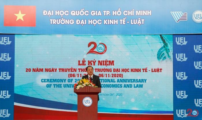 Phát biểu trong buổi lễ, PGS.TS Huỳnh Thành Đạt - Ủy viên Ban Chấp hành Trung ương Đảng, Chủ tịch Hội đồng, Giám đốc ĐHQG-HCM đánh giá về sự phát triển của Trường Đại học Kinh tế - Luật: "Với sự hỗ trợ của ĐHQG-HCM, Trường đầu tư hệ thống các phòng thí nghiệm, trung tâm nghiên cứu mang tính tiên phong trong các lĩnh vực thị trường tài chính, công nghệ ngân hàng và luật. Từ đó đã có những nghiên cứu giá trị, đóng góp cho quá trình phát triển kinh tế của Việt Nam cũng như đẩy mạnh công bố quốc tế trên các tạp chí khoa học uy tín, có thứ hạng cao."
