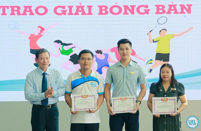 PGS.TS Nguyễn Văn Luân trao giải cho các đơn vị đạt thành tích trong môn thi đấu bóng bàn