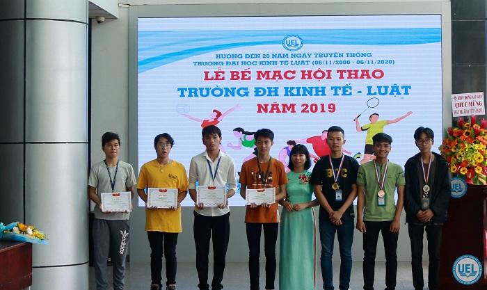 Đại diện các đội bảng sinh viên nhận giải thưởng các môn thi đấu