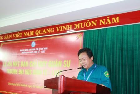 Ngày 06/01/2015, Trường Đại học Kinh tế - Luật tổ chức Lễ ra mắt Ban chỉ huy quân sự Trường.