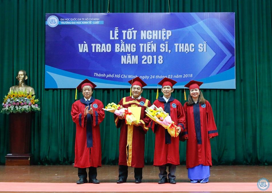 Sáng ngày 24.3.2018, tại Trường Đại học Kinh tế - Luật đã diễn ra Lễ tốt nghiệp và trao bằng tiến sĩ, thạc sĩ năm 2018.