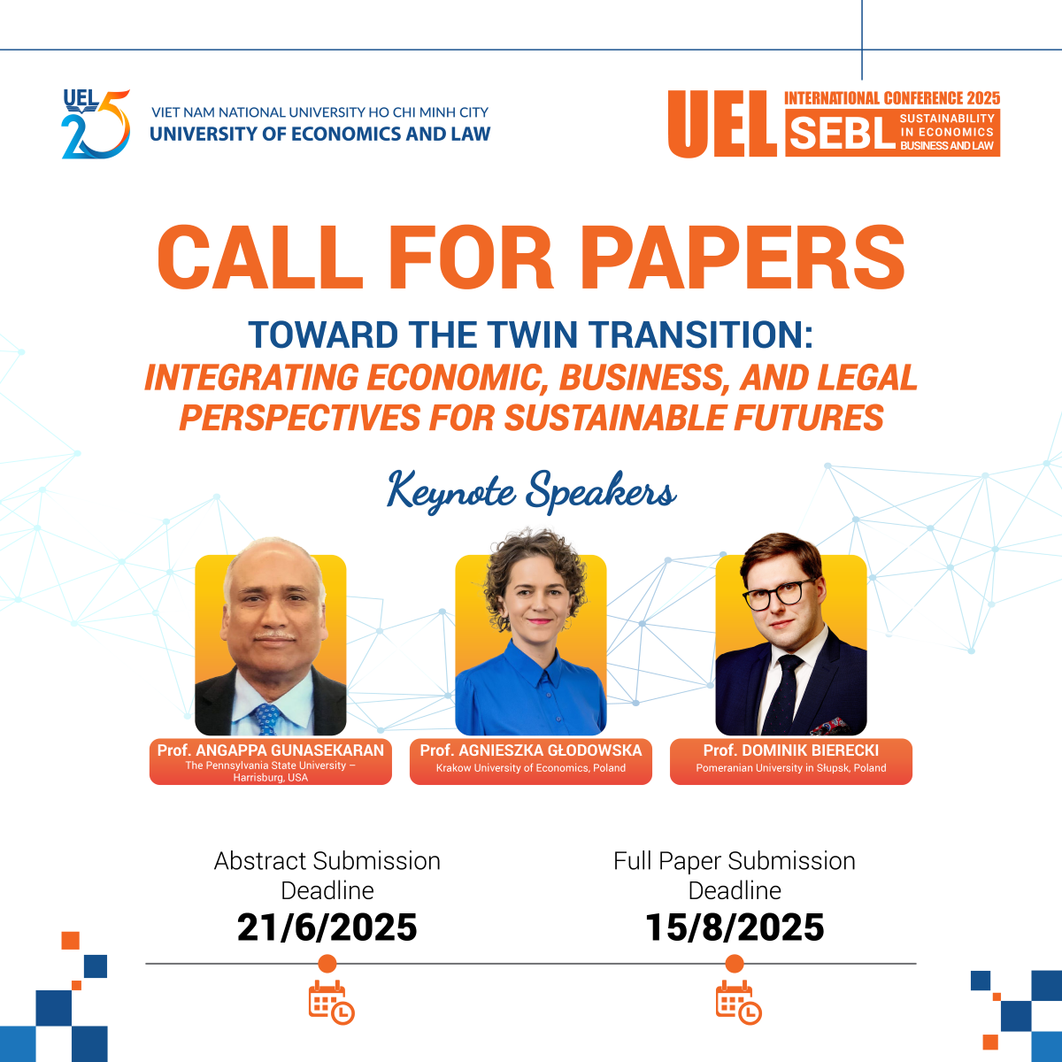 Trường ĐH Kinh tế - Luật, ĐHQG-HCM (UEL) trân trọng mời các nhà khoa học gửi bài nghiên cứu tham gia Hội thảo quốc tế về Tính bền vững trong Kinh tế, Kinh doanh và Luật (UEL-SEBL 2025) với chủ đề "TOWARD THE TWIN TRANSITION: INTEGRATING ECONOMIC, BUSINESS, AND LEGAL PERSPECTIVES FOR SUSTAINABLE FUTURES".