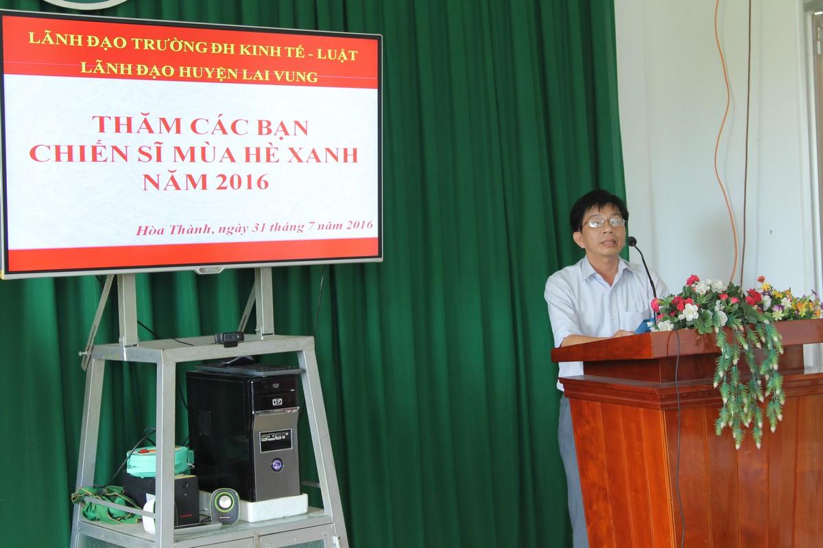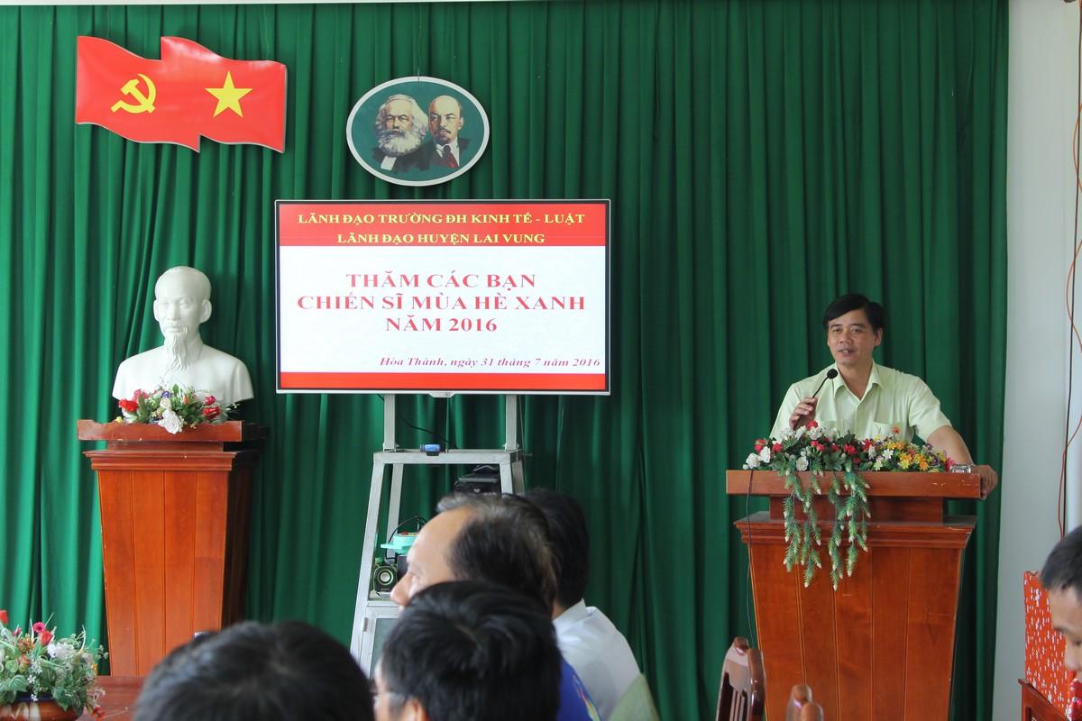 Phát biểu động viên chiến sĩ Mùa hè xanh, PGS.TS Nguyễn Chí Hải - Phó Bí thư Đảng ủy Trường đánh giá cao những đóng góp cụ thể, nỗ lực khắc phục khó khăn để hoàn thành các nhiệm vụ, kế hoạch đã đề ra. Đồng thời, nhắn nhủ các bạn sinh viên giữ gìn sức khỏe, tuyệt đối chấp hành nghiêm chỉnh nội quy của chiến dịch, tận dụng cơ hội này để cống hiến và trưởng thành. Những việc làm, đóng góp của các bạn tuy nhỏ nhưng có giá trị to lớn đối với địa phương, tạo sự cộng hưởng đối với nhiều hoạt động của địa phương, góp phần hỗ trợ chính quyền địa phương thực hiện các chính sách chăm lo cho người dân, đối tượng còn gặp khó khăn trong cuộc sống, xây dựng Nông thôn mới.