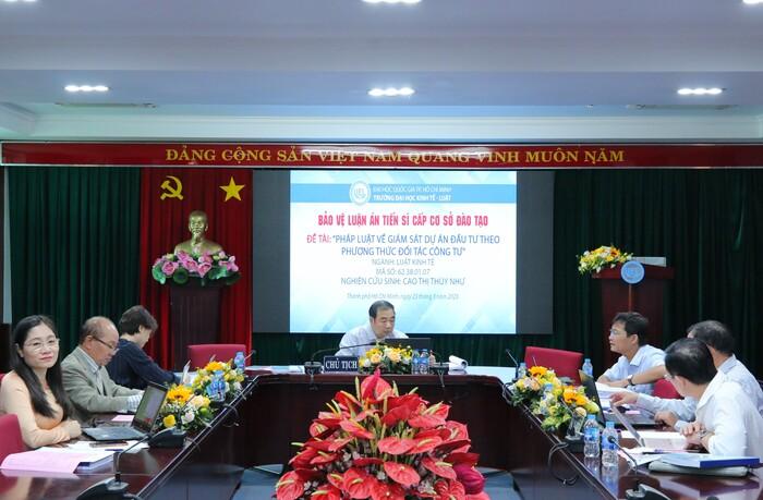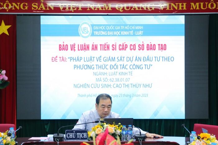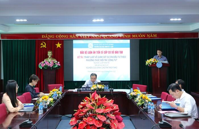 Hội đồng bảo vệ luận án tiến sĩ cấp cơ sở đào tạo của NCS Cao Thị Thùy Như do PGS.TS Lê Vũ Nam làm chủ tịch hội đồng. Tại buổi bảo vệ, NCS Cao Thị Thùy Như đã nhận được nhiều góp ý và đánh giá khách quan. Ngoài ra, Hội đồng cũng đưa ra những ý kiến khác để nghiên cứu sinh bổ sung, hoàn thiện luận án của mình trong thời gian tới.
