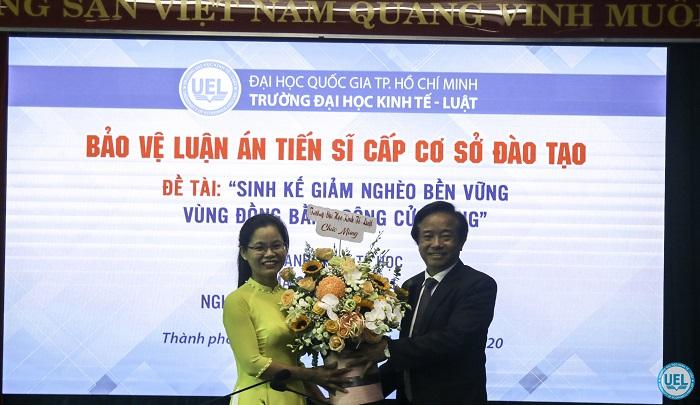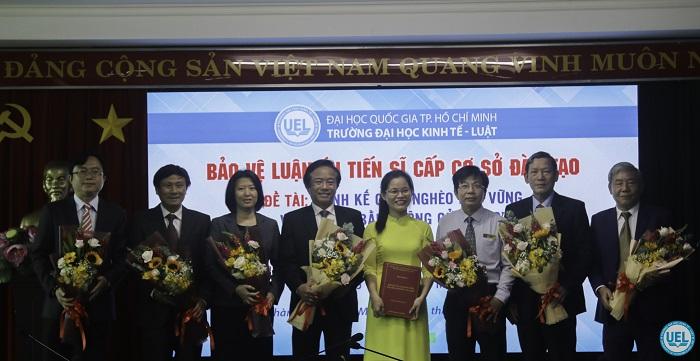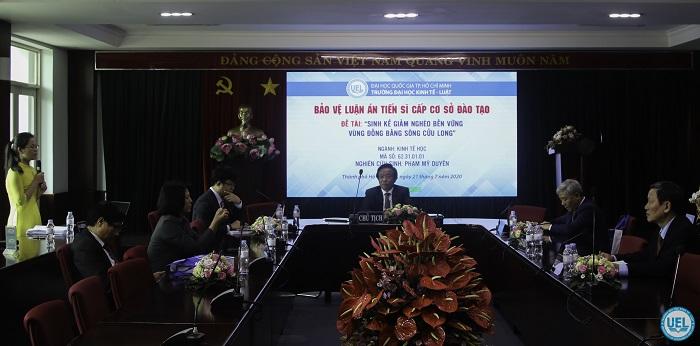 Sáng ngày 21.07.2020, tại Trường Đại học Kinh tế - Luật (ĐHQG-HCM), nghiên cứu sinh Phạm Mỹ Duyên đã bảo vệ thành công luận án tiến sĩ kinh tế cấp cơ sở đào tạo, ngành Kinh tế học, mã số 62.31.01.01 với đề tài "Sinh kế giảm nghèo bền vững vùng đồng bằng sông Cửu Long".