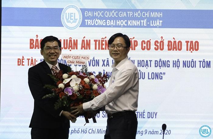 Sáng 11.9.2020, tại Trường Đại học Kinh tế - Luật, ĐHQG-HCM, nghiên cứu sinh Dương Thế Duy đã bảo vệ thành công luận án tiến sĩ cấp cơ sở đào tạo, ngành Kinh tế học, mã số chuyên ngành: 62.31.01.01, với đề tài "Tác động của vốn xã hội đến hoạt động hộ nuôi tôm vùng đồng bằng sông Cửu Long".