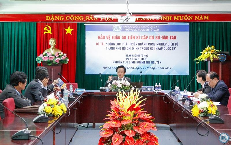 Ngày 25.8.2017, tại Trường ĐH Kinh tế - Luật, ĐHQG TP.HCM, Nghiên cứu sinh Huỳnh Thế Nguyễn đã bảo vệ thành công luận án tiến sĩ kinh tế cấp cơ sở đào tạo, ngành Kinh tế học, mã số ngành: 62.31.01.01, với đề tài "Động lực phát triển ngành công nghiệp điện tử Thành phố Hồ Chí Minh trong hội nhập quốc tế"./.