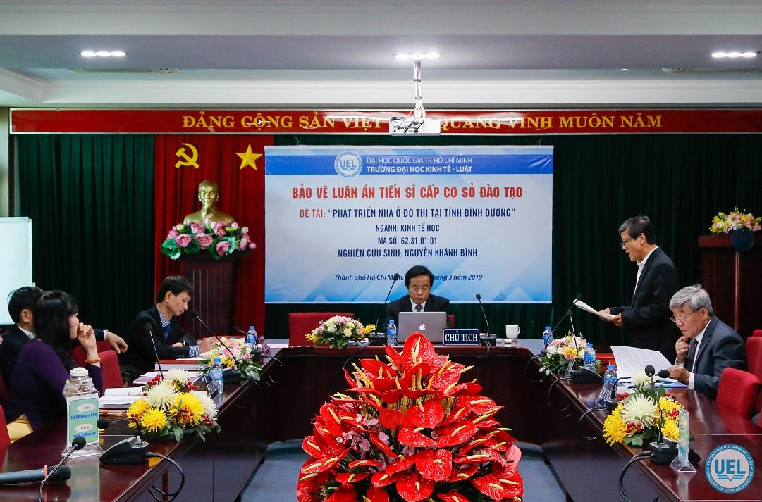 Ngày 28.3.2019, tại Trường Đại học Kinh tế - Luật (ĐHQG TP.HCM), nghiên cứu sinh Nguyễn Khánh Bình đã bảo vệ thành công luận án tiến sĩ kinh tế cấp cơ sở đào tạo, ngành Kinh tế học, với đề tài "Phát triển nhà ở đô thị tại tỉnh Bình Dương".