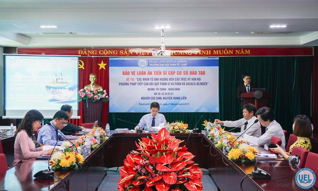 Ngày 21.6.2019, tại Trường Đại học Kinh tế - Luật (ĐHQG TP.HCM), nghiên cứu sinh Nguyễn Thanh Liêm đã bảo vệ thành công luận án tiến sĩ cấp cơ sở đào tạo, ngành Tài chính - Ngân hàng, với đề tài " Các nhân tố ảnh hưởng cấu trúc kỳ hạn nợ: Phương pháp tiếp cận hồi quy phân vị và phân rã OXACA BLINDER". Luận án được thực hiện dưới sự hướng dẫn khoa học của GS.TS Nguyễn Thị Cành và TS Dương Như Hùng.