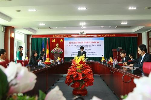 Buổi bảo vệ được tiến hành đúng theo quy định của Bộ Giáo dục & Đào tạo. Hội đồng đánh giá luận án có mặt 07/07 thành viên (theo Quyết định thành lập số 532/QĐ/ĐHKTL-SDH&QLKH ngày 01/06/2016 gồm 07 thành viên: PGS.TS Nguyễn Chí Hải - Chủ tịch Hội đồng; PGS.TS Ngô Hướng - Phản biện 1; PGS.TS Nguyễn Hồng Nga - Phản biện 2; PGS.TS Hạ Thị Thiều Dao - Phản biện 3; PGS.TS Đỗ Phú Trần Tình - Thư ký Hội đồng; PGS.TS Trần Nguyễn Ngọc Anh Thư và TS Nguyễn Văn Thuận - Ủy viên Hội đồng.