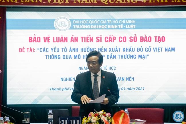 Sáng ngày 28/01/2021, tại Trường Đại học Kinh tế - Luật, ĐHQG-HCM, nghiên cứu sinh Nguyễn Văn Nên đã bảo vệ thành công luận án tiến sĩ cấp cơ sở đào tạo ngành Kinh tế học, mã số chuyên ngành: 62.31.01.01, với đề tài " Các yếu tố ảnh hưởng đến xuất khẩu đồ gỗ Việt Nam thông qua mô hình hấp dẫn thương mại".