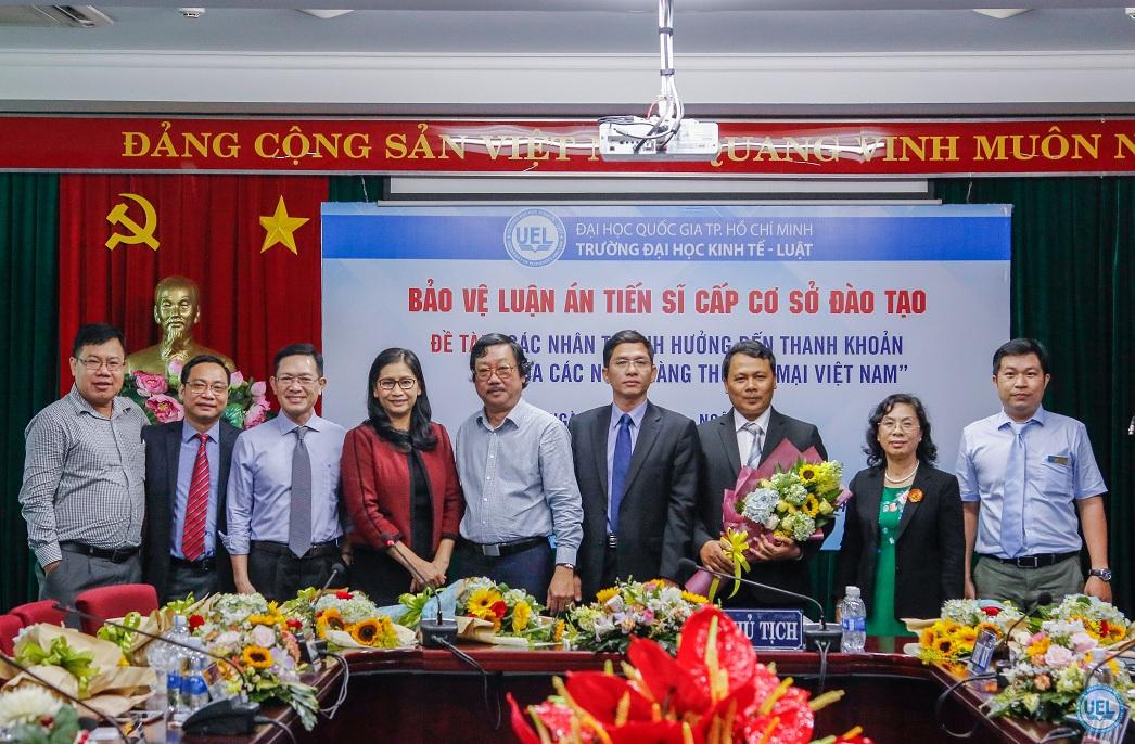 NCS Trần Vinh chụp hình lưu niệm với các thành viên Hội đồng đánh giá luận án và người hướng dẫn