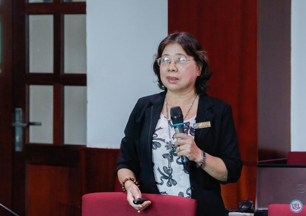 GS.TS Nguyễn Thị Cành (Trường ĐH Kinh tế - Luật) trình bày tham luận "Cơ chế phân cấp quản lý ngân sách cho chính quyền địa phương tại Việt Nam - Thực trạng và hướng đổi mới nhằm