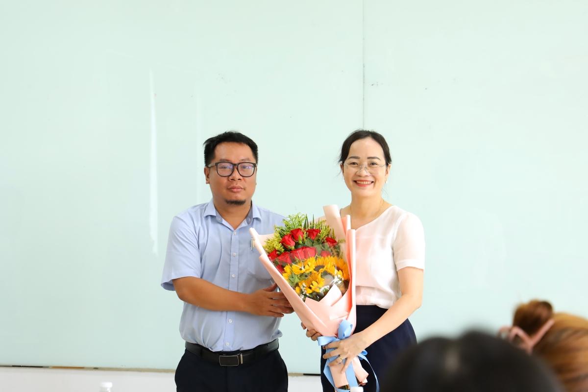 ThS Hà Quang Đông - đại diện Ban tổ chức tặng quà cảm ơn ThS Quyên đã tham gia chia sẻ chuyên đề