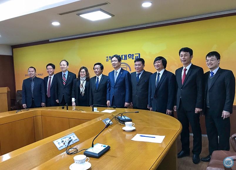 Nhóm nghiên cứu của UEL chụp hình lưu niệm với Hiệu trưởng và các giáo sư của ĐH Pukyong
