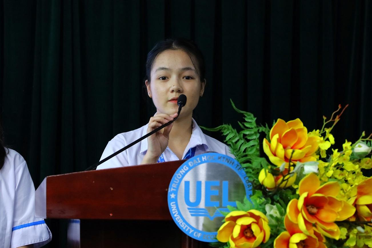 Sinh viên Lê Nhật Đông Kiều đại diện các bạn nhận học bổng phát biểu cảm ơn PwC Việt Nam