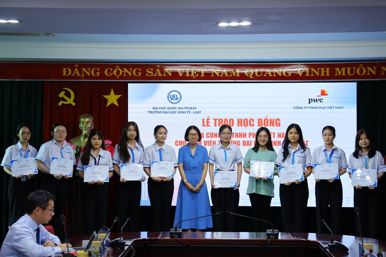 Tham dự buổi lễ, về phía Trường Đại học Kinh tế - Luật có PGS.TS Lê Vũ Nam - Phó Hiệu trưởng, lãnh đạo Khoa Kế toán - Kiểm toán, lãnh đạo Phòng Hợp tác phát triển và phòng Tuyển sinh & Công tác sinh viên. Về phía công ty TNHH PwC Việt Nam có bà Giang Bảo Châu - Giám đốc Dịch vụ tư vấn thuế tham dự. Năm học này, công ty TNHH PwC Việt Nam đã trao 10 suất học bổng với tổng giá trị 40 triệu cho sinh viên Khoa Kế toán - Kiểm toán có thành tích học tập tốt.