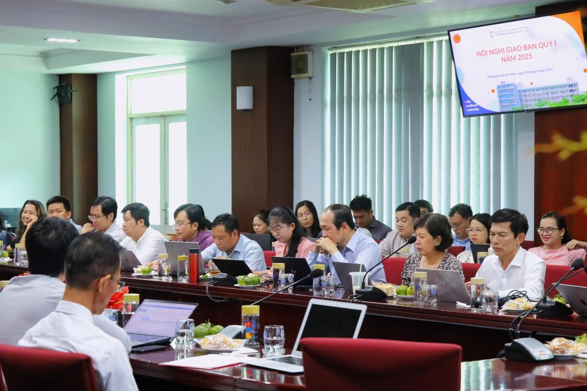 Với 8 mục tiêu trọng tâm trong năm 2025, quý I, Trường đã triển khai đồng bộ và đạt được một số kết quả nhất định. Chẳng hạn doanh thu từ khoa học công nghệ từ nguồn ngân sách nhà nước, Bộ, TW, Tỉnh, ĐHQG-HCM đạt 30% KPIs năm; tỷ lệ lan tỏa công bố quốc tế thuộc danh mục WoS/Scopus vẫn được duy trì; các chỉ tiêu về phát triển chương trình đào tạo mới, chương trình đào tạo bằng tiếng Anh, MOOC... Trường đã triển khai, đang trình ĐHQG-HCM thẩm định.