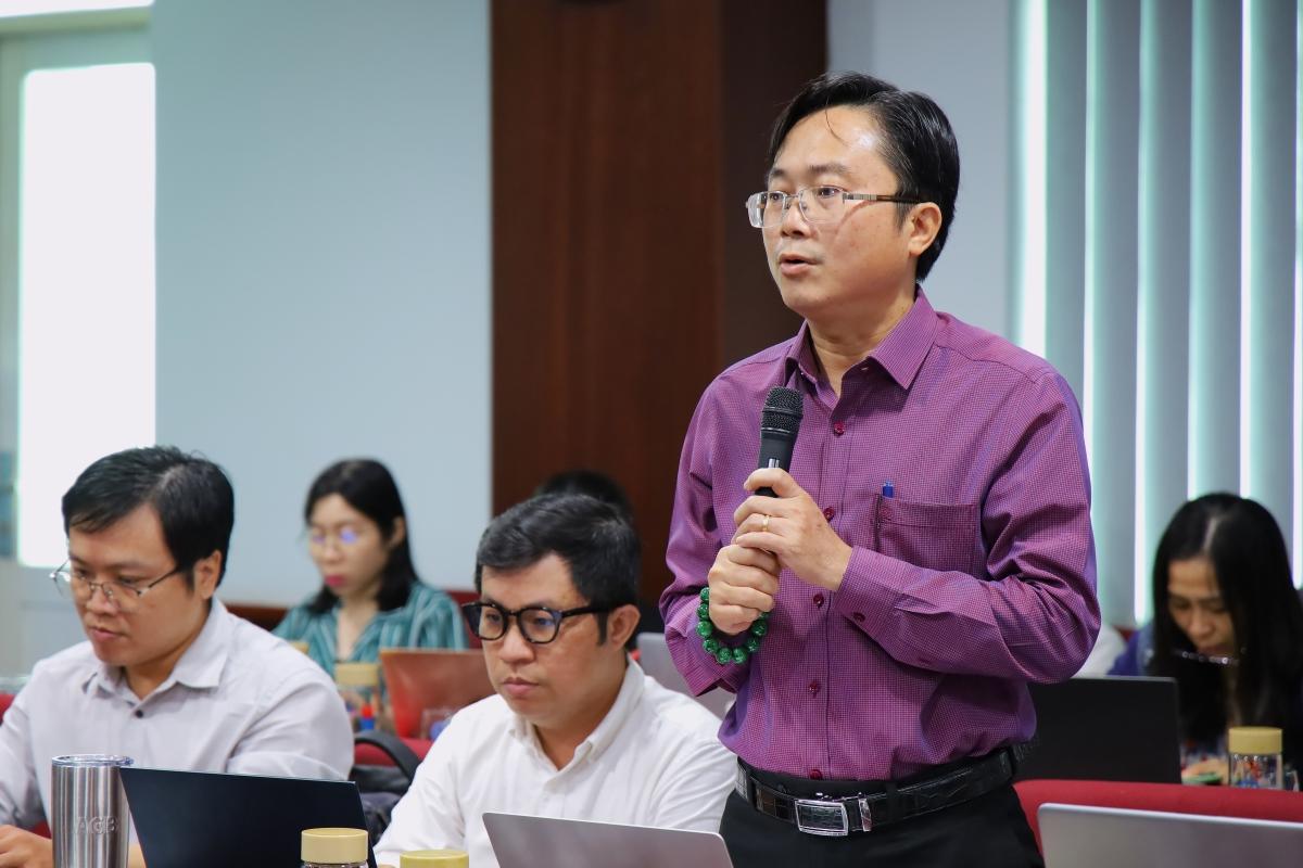 PGS.TS Đỗ Phú Trần Tình - Viện trưởng Viện Phát triển chính sách ĐHQG-HCM chia sẻ nhu cầu hợp tác từ các địa phương và đề xuất Trường sớm triển khai các nhóm nghiên cứu mạnh, nhóm nghiên cứu liên ngành để thực hiện các đề án của địa phương, góp phần hoàn thành KPI doanh thu từ KHCN