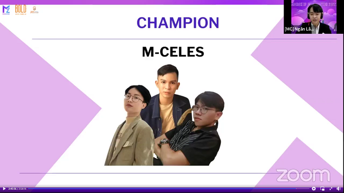 Vượt qua các đội thi khác, đội "CELES" gồm 03 thành viên đến từ Khoa Quản trị kinh doanh và Khoa Kinh tế đối ngoại, Trường Đại học Kinh tế - Luật đã xuất sắc giành giải Quán quân, đó là: