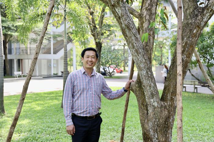 Học viên Nguyễn Văn Dũng bên cạnh cây vú sữa tặng nhà trường