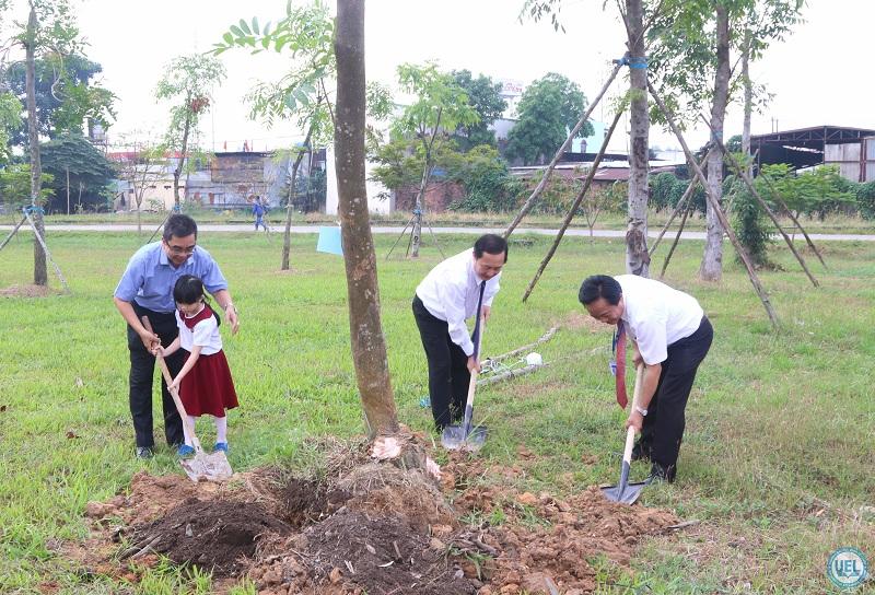 PGS.TS Huỳnh Thành Đạt, PGS.TS Nguyễn Tiến Dũng và PGS.TS Nguyễn Ngọc Điện cùng trồng cây