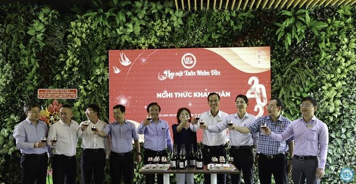 Sau chương trình "Tết trồng cây", đại diện ĐHQG-HCM, Đảng ủy, Ban Giám hiệu, Ban Chấp hành Công đoàn, Đoàn Thanh niên - Hội Sinh viên cùng tập thể cán bộ, viên chức nhà trường hân hoan tham gia buổi "Họp mặt đầu Xuân Nhâm Dần 2022 " tại Không gian Khởi nghiệp và Ngoại ngữ (UEL Startup & Language Space) của Trường.