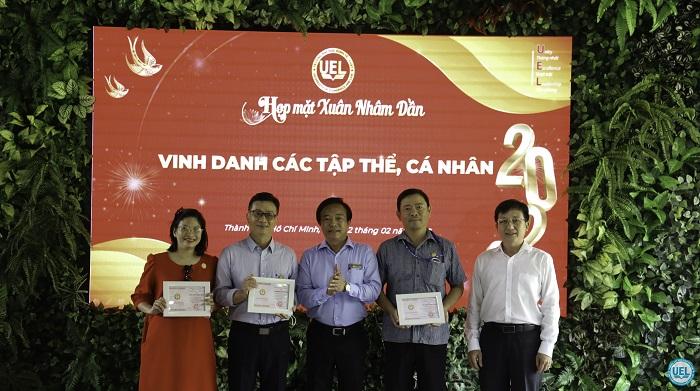 Trong thời gian vừa qua, nhiều tập thể, cá nhân của Trường Đại học Kinh tế - Luật đã không ngừng nỗ lực, phấn đấu hoàn thành xuất sắc nhiệm vụ, kết quả đã có 02 tập thể xuất sắc nhận Cờ thi đua cấp Bộ và 03 cá nhân vinh dự nhận Kỷ niệm chương Vì sự nghiệp giáo dục của Bộ Giáo dục và Đào tạo.