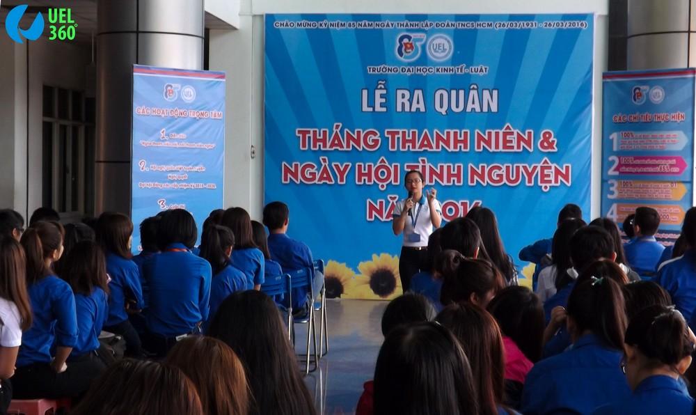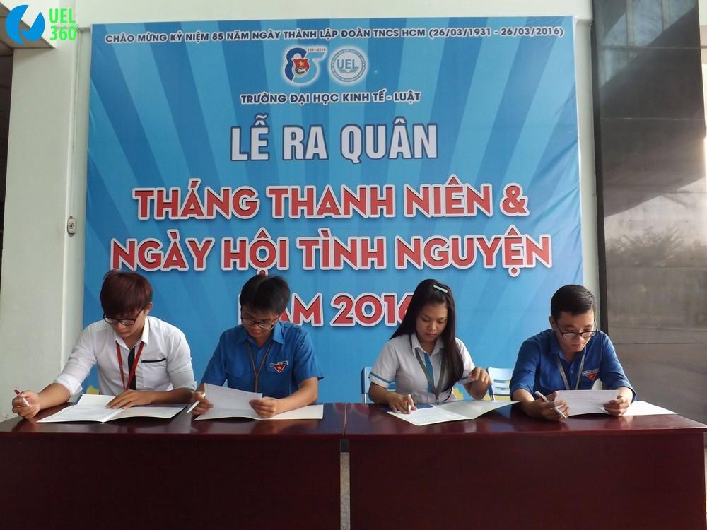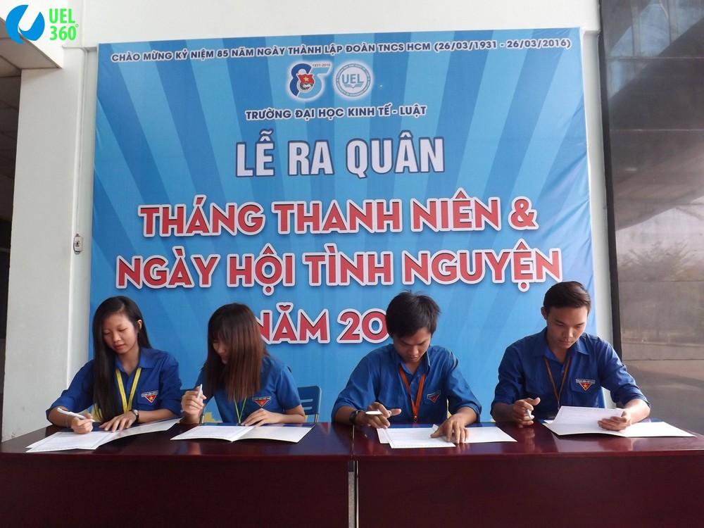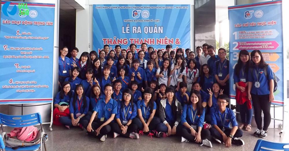 Hòa chung không khí sôi nổi của tuổi trẻ cả nước ra quân thực hiện Tháng Thanh niên 2016 nhằm thiết thực chào mừng kỷ niệm 85 năm ngày thành lập Đoàn TNCS Hồ Chí Minh (26/03/1931 - 26/03/2016). Ngày 28/02/2016, Đoàn trường Đại học Kinh tế - Luật tổ chức Lễ ra quân Tháng Thanh niên 2016 với chủ đề: "Tuổi trẻ Kinh tế - Luật tự hào tiếp bước truyền thống; chung sức tham gia xây dựng Thành phố Hồ Chí Minh có chất lượng sống tốt, văn minh, hiện đại, nghĩa tình" .