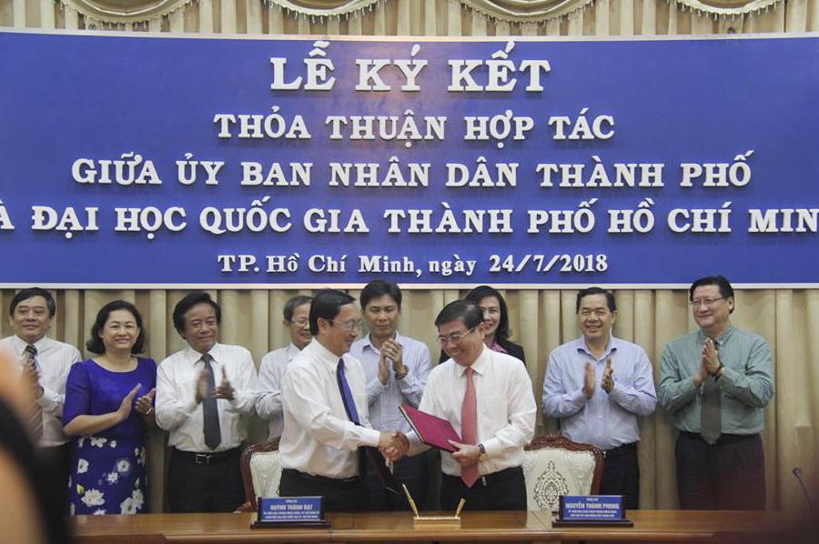Ngày 24.7.2018, thay mặt cho lãnh đạo Ủy ban nhân dân Thành phố Hồ Chí Minh, ông Nguyễn Thành Phong - Chủ tịch Ủy ban nhân dân Thành phố Hồ Chí Minh (UBND TP.HCM) đã ký thỏa thuận hợp tác với Đại học Quốc gia Thành phố Hồ Chí Minh (ĐHQG TP.HCM).