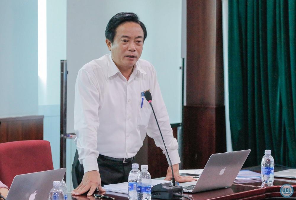 TS. Nguyễn Thanh Trọng - Trưởng phòng Đào tạo trình bày tham luận "Một số vấn đề đặt ra trong xây dựng phương án tuyển sinh đại học năm 2018 của Trường ĐH Kinh tế - Luật"