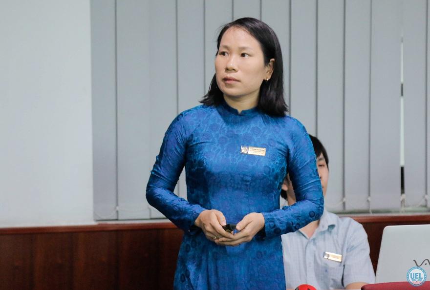 Th.S Nguyễn Thị Diễm Hiền - Giảng viên Khoa Tài chính - Ngân hàng trình bày tham luận "Từ nhu cầu nhân lực ngành ngân hàng nghĩ về công tác tuyển sinh ngành tài chính - ngân hàng tại Trường ĐH Kinh tế - Luật"
