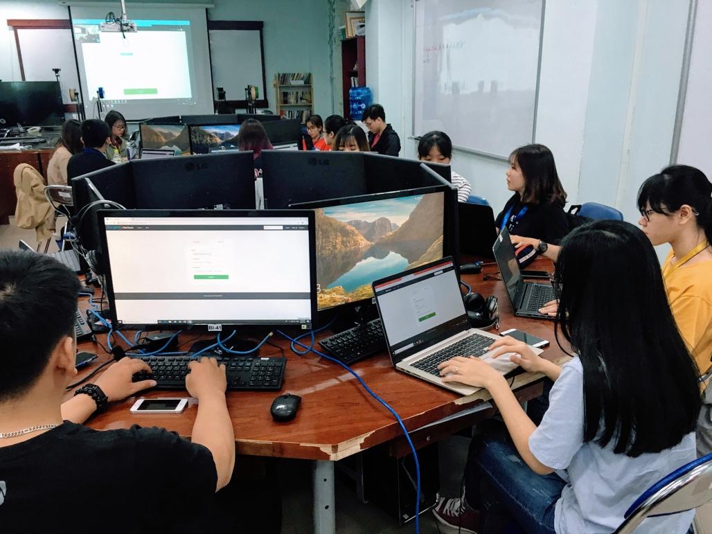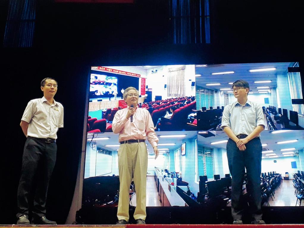 Ngày 25.5.2019, Phòng Công nghệ thông tin phối hợp với Trung tâm BI LAB cùng các đối tác Toshiba Memory Corporation (Nhật) và SoftFoundry (Đài Loan) thử nghiệm hệ thống giảng dạy trực tuyến FacePro tại Hội trường để truyền tải trực tiếp nội dung buổi học đến các lớp học.