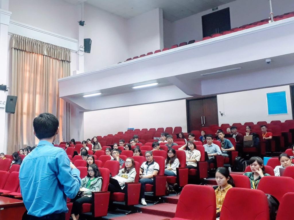 Sinh viên được truyền tải bài giảng trực tiếp tại Hội trường.