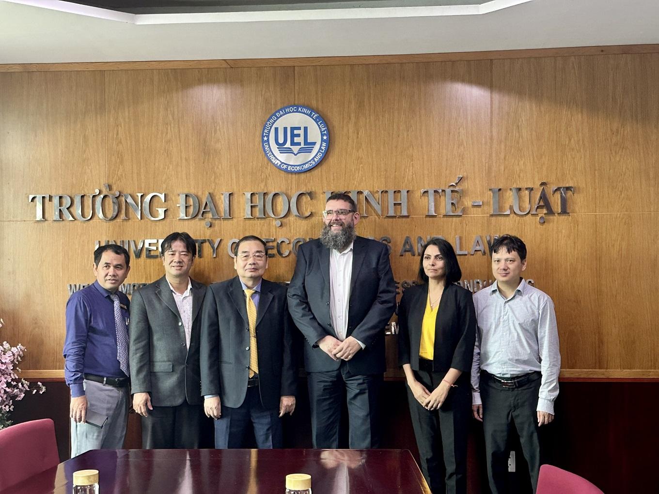 Trường Đại học Kinh tế - Luật hợp tác đào tạo với Trường Đại học Birmingham City từ năm 2017 đến nay với 02 chương trình liên kết quốc tế: cử nhân Kinh doanh quốc tế và thạc sĩ Quản trị kinh doanh. T ại buổi làm việc, hai bên đã trao đổi về tình hình liên kết đào tạo hiện nay giữa hai trường, cũng như thảo luận kế hoạch tương lai về việc mở rộng quan hệ hợp tác trong đào tạo các ngành mới ở bậc cử nhân và thạc sĩ.
