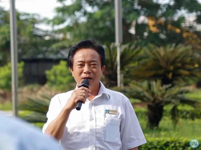 PGS.TS Nguyễn Tiến Dũng - Hiệu trưởng nhà trường phát biểu nhân lễ chào cờ đầu năm học mới